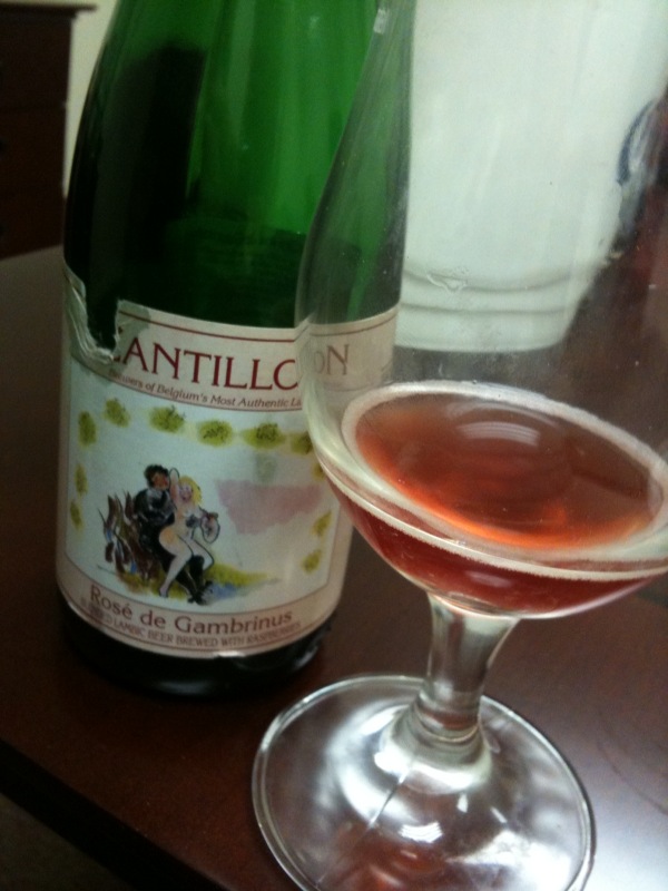One of the beers was a Cantillon Rose de Gamrinus, a honest-to-goodness sour lambic. It poured a beautiful rosy red with a tinge of orange. The nose was tart raspberries with a hint of a yeasty funk smell as well. The first sip was exactly what I thought a sour should be – it was really sour, but fruity as well, that gave way to an earthiness, and then a little citrus in the finish, like a bit of lemon peel. It was all there – fruitiness, pucker-factor and a bit of the funk. This is what I’ve been looking for!