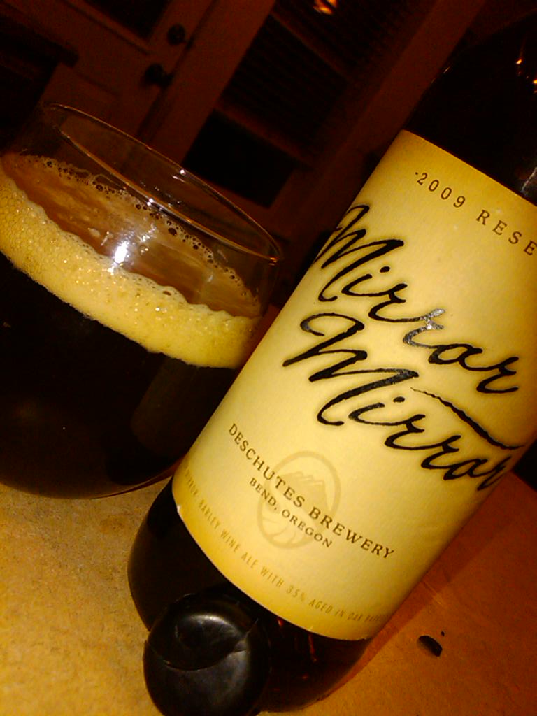Last night I had my son go out to my beer bunker and pull out something interesting he would like to try.  Well actually I sent him back three times, because he kept pulling out beers I was aging.  He finally pulled out a beer that worked,  Deschutes Mirror Mirror Barley Wine.  It was labeled for opening on April 20th, but I figured what the heck!  This is one of their reserve series and it should be one of the best beers I have.  Was it good?…