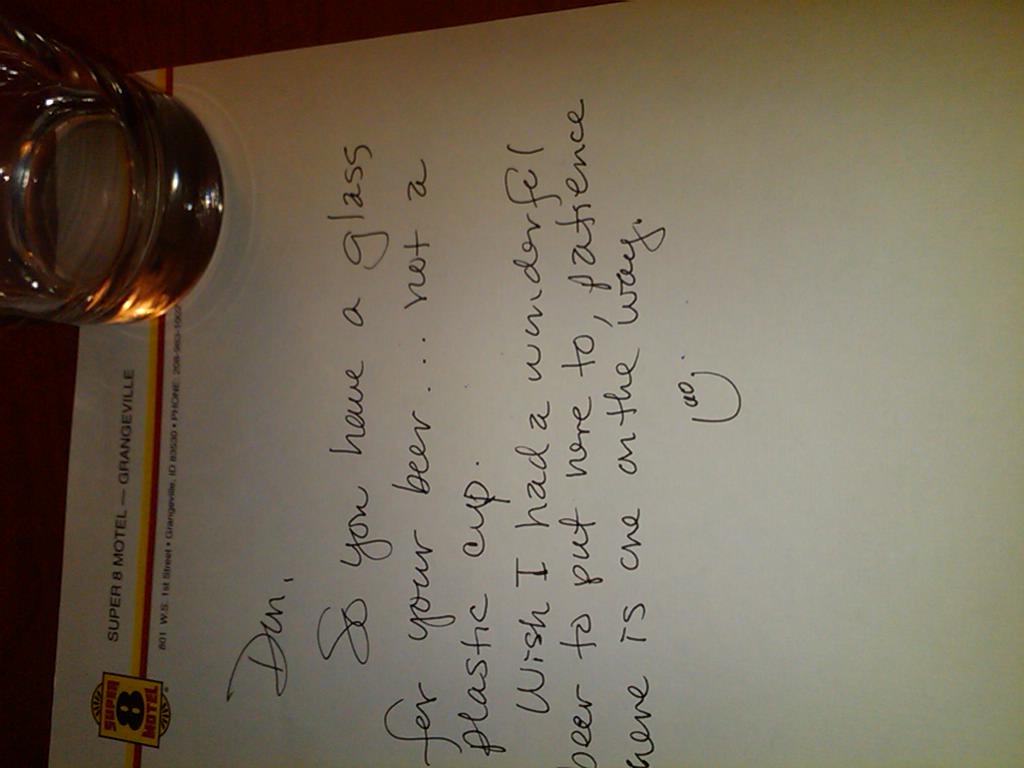 Then the last time I was here I gave her a 21st Amendment Brew Free or Die IPA.  See living in Grangeville she doesn’t get back down to Boise a lot to pick up good craft beer. So I give her one every now and then to try.  So when I came to my room tonight this is what I found…