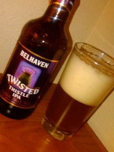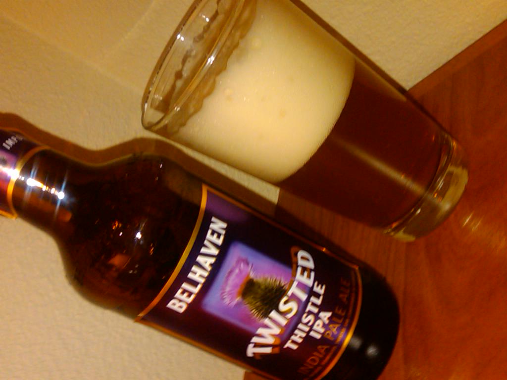 The Belhaven Brewery’s Twisted Thistle IPA is a 6.1% ABV brew that is so light it is almost worthy of a session label.  This brew is a medium bodied IPA that has a very piney nose and a huge three finger head that is leaving an absolute ton of lacing and foam on the sides of the glass as it works its way down.  The nose is piney, and hoppy, but I am also picking up on a good bit of yeast and malt that anchors this well balanced IPA.