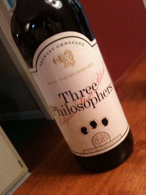 I would choose a Chimay here, but Don and Kevin both campaigned for Three Philosophers, which I’m not sure I’ve ever had. I have no idea what to expect, but it should be fun to see what Jill and her fella have to say.
