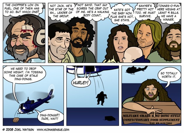 OK, so I never watched Lost.  I don’t understand any of the banter that happened on my own blog site today.  But I do understand that Hurley the lovable jerry curled pudgy dude spend 6 or 7 years on a desert island and never lost an ounce.  My kids used to joke that he found a portal to McDonald’s and never told the rest about it.  What really struck me was how totally into this show people are ( my brother included).  They also seem to be quite sensitive about their guilty addiction.  I was summarily panned last week when I said the show and its premise was stupid.  Jeez People, lighten up, it’s just a stupid TV show.  Its not like its M*A*S*H or something.  So while my brother and the rest of the Lost Boys (and Girls) were all atwitter about the series finale of this confusing, and not just a little unbelievable show, I watched a rousing episode of King of the Hill and a couple of episodes of Chopped.  Not life changing, but mindless entertainment that served me well.  You know what else?  I don’t watch PBS, I don’t listen to NPR, and I could give a damn about Shakespere.  Yeah, I’ve read it, I even understand it, I just think its stupid.