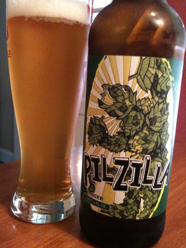 So what’s so special about this beer?  Let’s start with the pour. Pilzilla fills the glass with a beautiful, unfiltered golden haze topped with a pristine and fluffy white head.  It certainly looks the part.