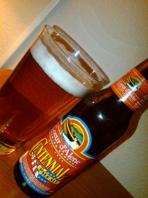 This Centennial Pale Ale is brewed by the Coeur d’Alene brewing company from Coeur d’Alene Idaho.  As you can see it poured a golden mahogany with about a one finger white head that dissipated quickly.  It did leave a moderate amount of lacing on the glass.