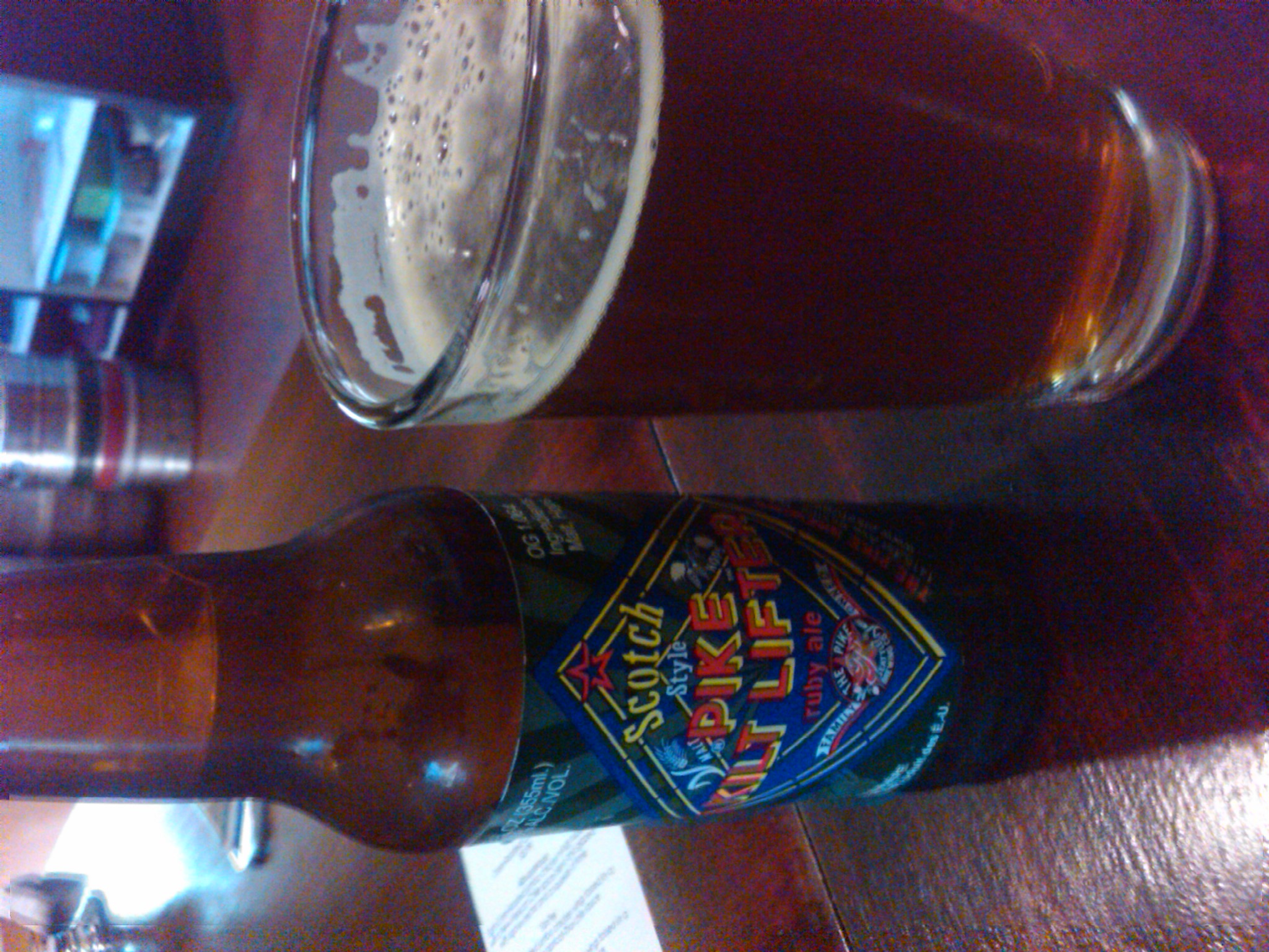 See Pike’e Kilt Lifter is a 6.5% ABV brew and I was on my lunch hour, so having a second wasn’t really in the cards, and I had already gotten half way through when I had the idea to switch.  If I was drinking this at home I would have poured it out, because life is too short to drink shitty beer, but I had paid for it, and frankly, the pizza I ordered was spicy and I needed a cool drink.