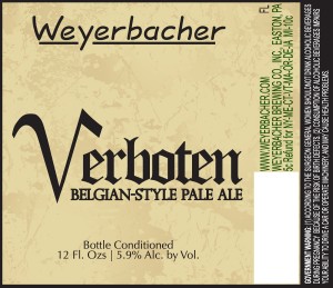 As many of you know, Weyerbacher brews some of my favorite beers, and I’m a fan of most everything they do.  But I’m a bit of a sissy when it comes to Belgian beers with metallic esters, and so Verboten will be “Forbidden” in my beer fridge from now on.