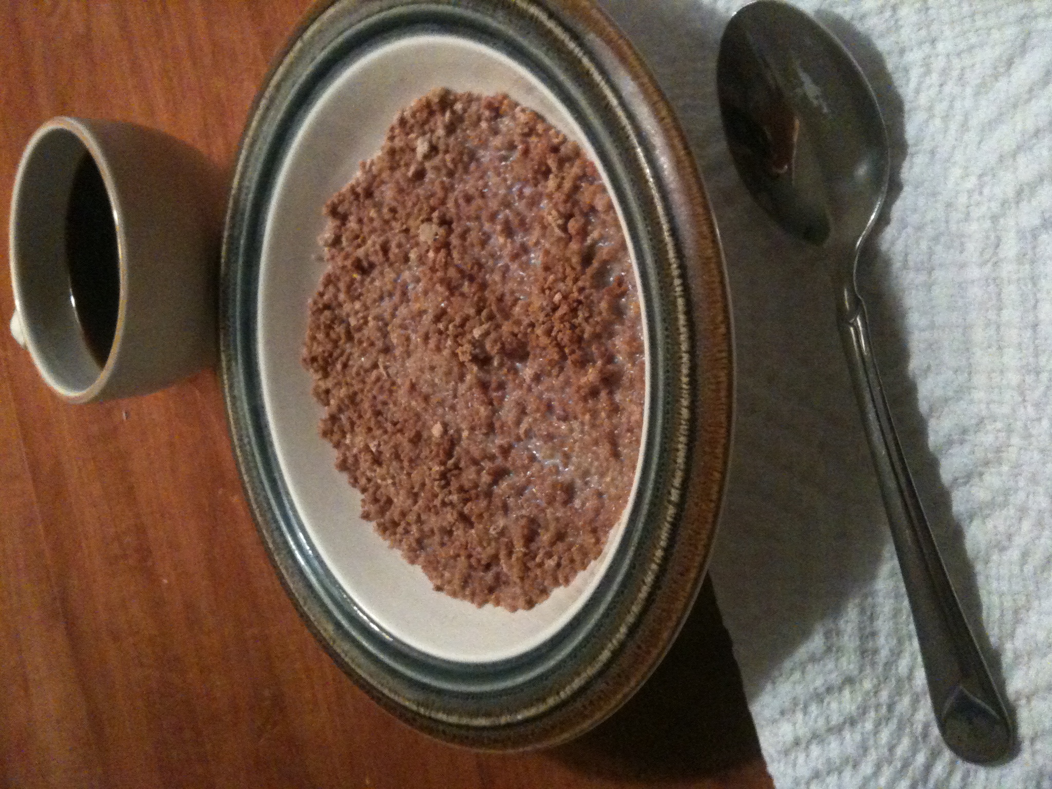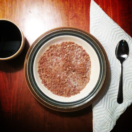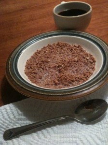 The breakfast was as simple as it gets. I had a bowl of Grape Nuts and a cup of strong French Roast coffee. But eating them in combination was a close approximation flavor-wise of drinking a nice imperial coffee stout.