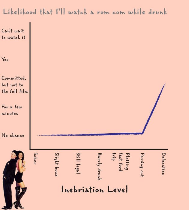 Our buddy John over at The Droid You Are Looking For brings the science on this one, with a series of infographics showing how his level of inebriation affects his willingness to watch different kinds of films.  The results are funny and very insightful.