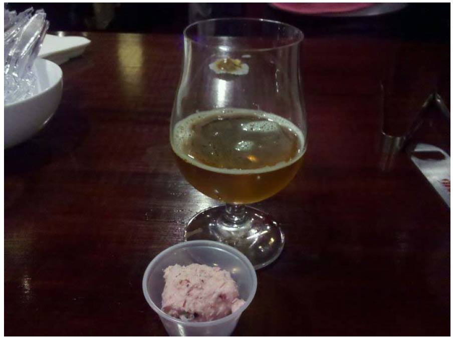 Fist up was a white chocolate hazelnut muffin paired with Laughing Dog’s Cream Ale.  This is my go to summer brew.  I love it.  It is rich and flavorful with a little biscuit flavor and enough hop to make things interesting.  The flavors of the white chocolate paired flawlessly with the creaminess of the beer, and the hazelnut really brought out the buiscuit flavor well.  Here is another thing you don’t know about me.  I never really thought that pairings really mattered.  But after this event I’m a staunch believer that putting together beer with food flavors really is an art.
