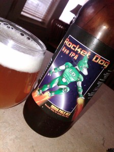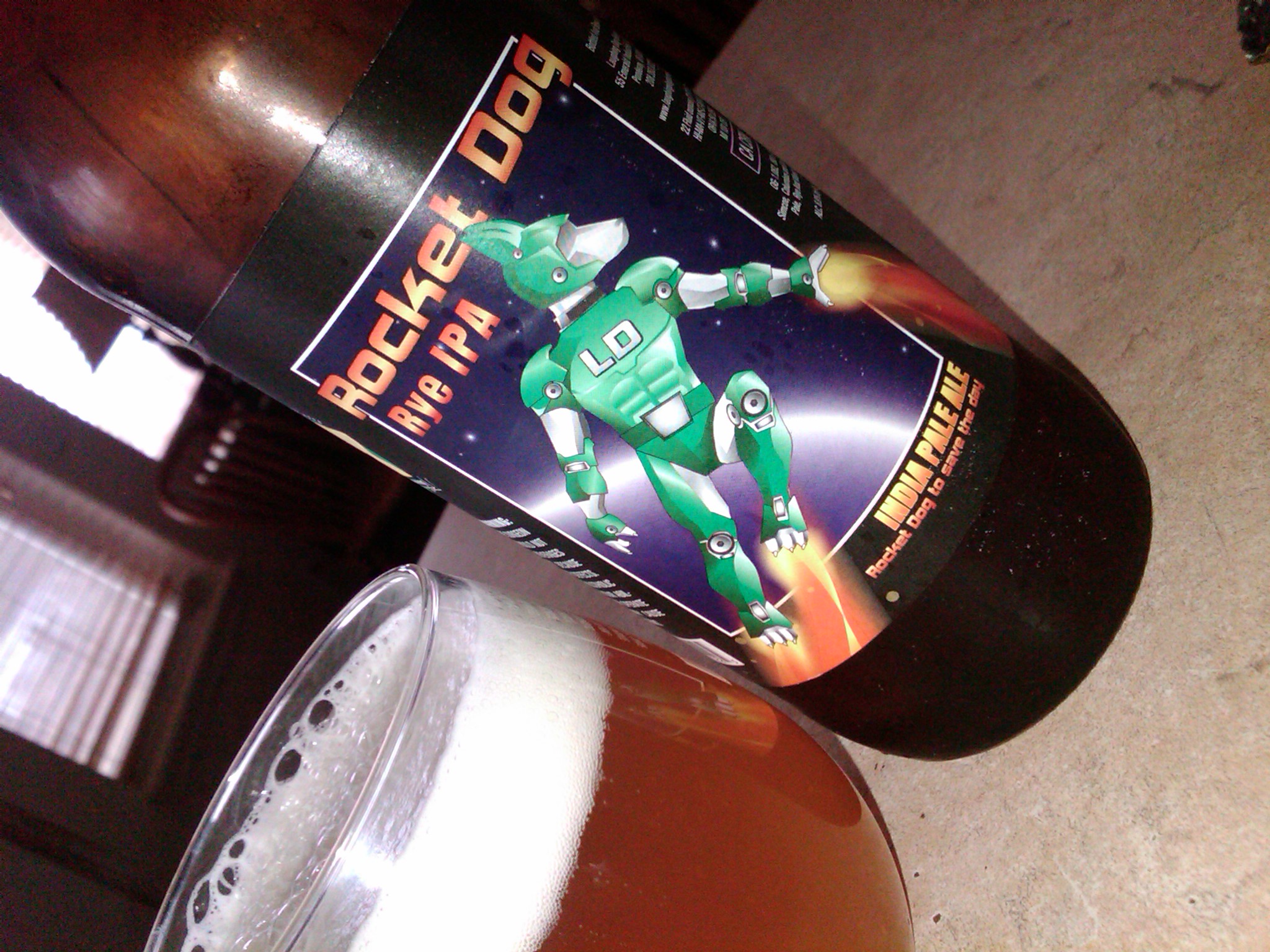 But this particular beer I had Sunday was an amazing expression of the brewers craft.  It literally sent shivers down my spine when I first tasted it, it was that good!  So why does a beer this good have such a ridiculous label?  This Rye IPA is quite possibly the best one available, let alone the best I’ve ever tried.  So what an IronMan Dog like thing has to do with great beer is inexplicable to me.  I hesitated to put this label on my silly little blog, can you imagine what it might be doing to overall sales of the beer!  Like it or not, people judge the beer based on the label.  I’m certain there are people in the world that have passed on these beers over and over again because they can’t get past the label.  I know we’ve had this conversation before with Zac Davis from Shmaltz Brewing and it is a bit of a catch 22 that beer guys find themselves in with labels.  But c’mon,  Rocket Dog?  Ok, I’ll get off my soapbox here and get onto a review of this fantastic beer…