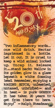 The Commission has the ability to reject the registration of anything “deemed to promote violence, racism, sexism, intemperance or intoxication or to be detrimental to the health, safety or welfare of the general public.”  They think the Raging Bitch label fits this bill, taking particular exception to the beer’s name and a passage on the beer’s label, penned by Gonzo artist and the label’s designer Ralph Steadman.