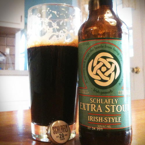 I picked up a six pack of Schlafly Irish-Style Extra Stout on Friday night and have to say it’s a wonderful beer.  It has a dry, chocolatey flavor and a creamy, satisfying mouth feel. It’s a total treat, and is only available for a limited time, so go snap some up if you’re a stout-loving gal or guy.