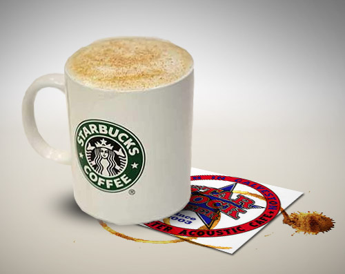 Starbucks pulls this crap a LOT. They also sued the local roller derby league over their logo, which doesn’t even closely resemble the starbucks logo, except for the fact that it’s contained in a circle.