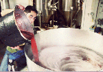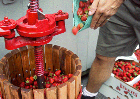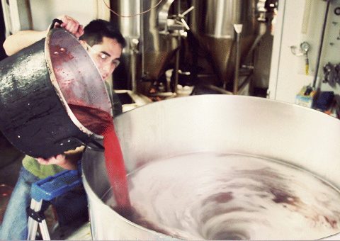 Every once in a while you see something that makes you take pause and go “wow – this is something new.”  That’s what I did when I saw these uncanny animated gif loops. They feature craft beer folk hero Sam Calagione brewing up a batch of a new strawberry beer which Dogfish Head is prototyping at their Rehoboth Beach brewpub starting today.