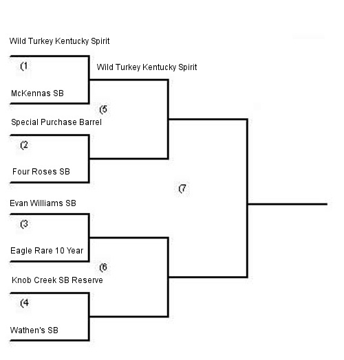 Note:  I decided to go ahead and use the Eagle Rare 10 year to round out the bracket.  I got a lot of love for both Blantons, and Elijah Craig 18 year old, but ultimately my pocketbook won.  I already had the Eagle Rare in the bunker, and with an upcoming Family vacation to Las Vegas I decided to go ahead with what was already on hand.  Refer to rule 4.