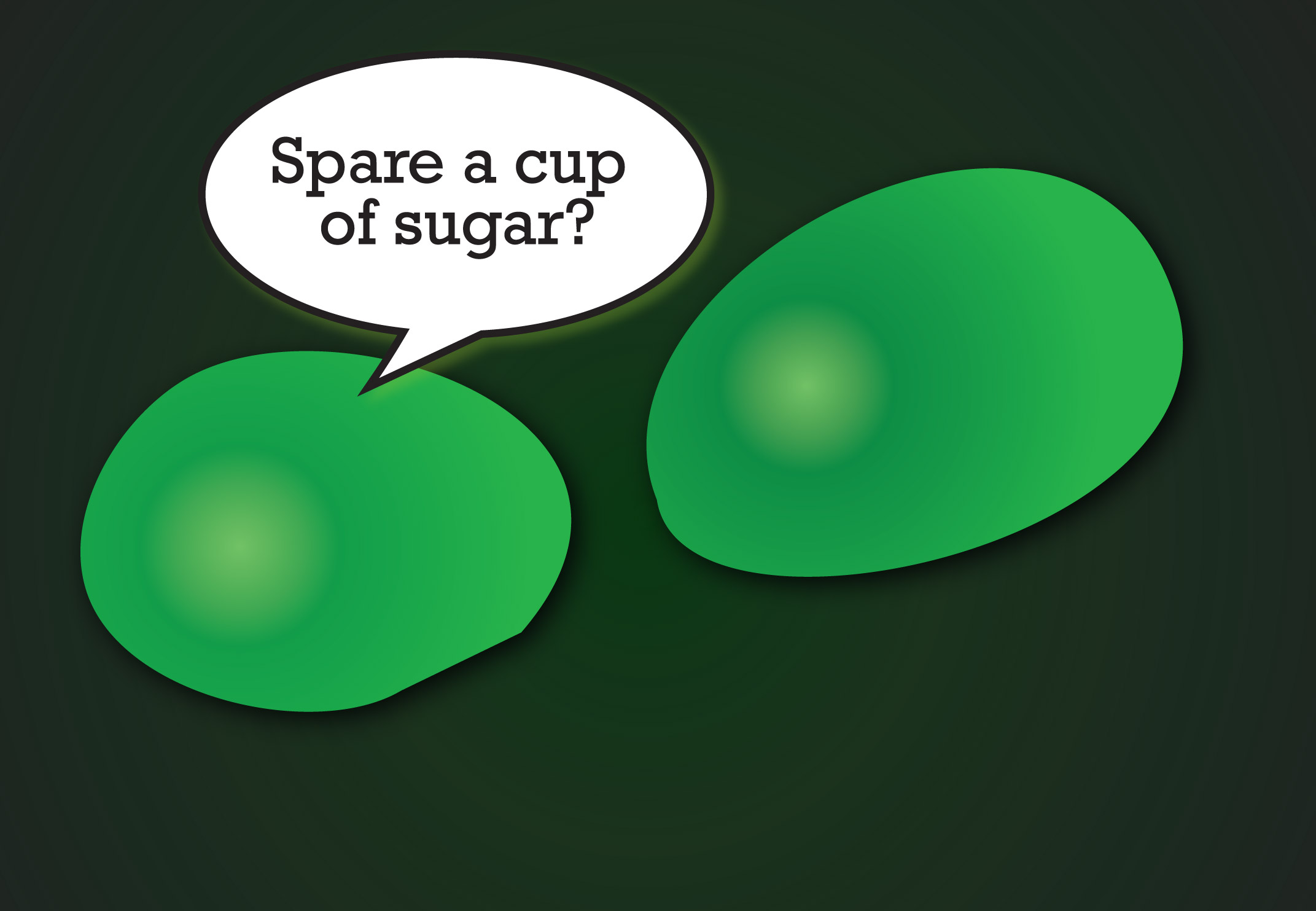 We all know that yeast cells love to eat sugar, but it turns out they really can’t do it alone.  In order to prepare the sugars for absorption through their cell walls, yeast cells make an enzyme called invertase which breaks the sugars down and makes them ready to eat.  Turns out, this is a very inefficient process, and a single yeast cell can only process 1% of the ready-to-eat food it creates.  In many cases, it’s not enough nutrition to grow and divide, so the cell winds up living in its mother’s basement until it dies from a heart attack with Cheetos-stained fingers while fighting an over-stimulating battle on World of Warcraft (or the yeast version of this evolutionary dead-end).