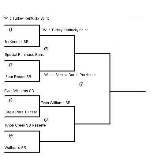 So hands down the winner of this round was the Evan Williams, but I don’t hold out a lot of hope for it to make it any further.  This match up was like the Cleveland Browns versus the Carolina Panthers, I guess someone has to win, but the real loser is the viewer.   For those of you keeping score here is what the bracket looks like now: