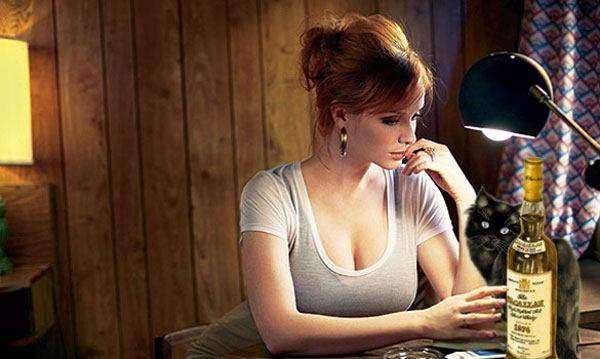 I like how we’re all thinking that if Christina Hendricks would just dump her husband, we’d all be able to win her heart by simply sipping on some scotch.