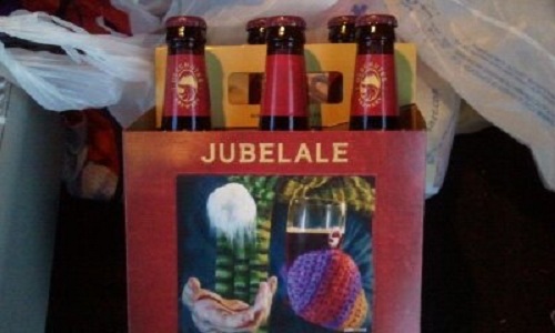 Turns out the tinkling I heard was actually wine bottles being restocked, but I did manage to make my way back to the beer section and what to my wondering eyes should appear, but a sixer of Jubelale and a case of craft beer!  That’s right WalMart did indeed have craft beer.  I picked up this sixer of Deschutes Jubelale which is the brewery’s winter seasonal.  It was priced right too at $7.59, that saved me a couple bucks from anywhere else I can find it.  Their selection, while limited was better than expected.  They had quite a few offerings from Deschutes including their Mirror Pond pale ale, Black Butte Porter, the Jubelale, and their Inversion IPA.  All solid offerings.  They carried Stone IPA, Alaskan Amber, and a lot of the New Belgian beers, including their mixed 12 pack.  The one that surprised me the most was the Boulevard What beer.  That was probably the most unexpected beer in the case, and one of the most exotic for these parts.