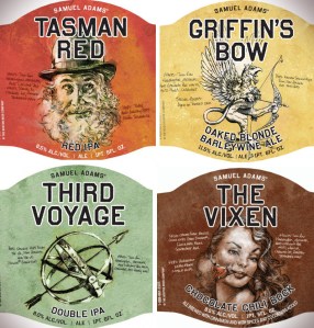 When we discussed our “no-go” breweries here yesterday, a bunch of folks had Sam Adams on their list, saying that they are too big and too boring to be worth picking up.  It seems pretty clear that these limited-release beers and their funky labels are an attempt to change that.  Each beer is made with interesting ingredients and are certainly not something you’d find next to the Coors Light.