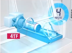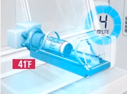The Blast Chiller compartment can cool a 12 ounce can of beer from room temperature to a delightfully chilly 41 degrees in just four minutes.  It can do the same with two cans or a bottle of wine (or a bomber of beer) in eight minutes. The chiller blasts its target with jet-engine-level bursts of freezing air while the can is gently swirled to prevent the formation of ice crystals inside.