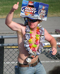 NASCAR Nation – I have to walk a bit of a tightrope here, as I don’t want to come off like a beer snob (too much, at least), but when you talk about beer, some people think of a guy with a Bud Light box for a hat, screaming for Jimmy Johnson while dancing shirtless in the Talladega sun.  You can see I have proof of this.  It’s this guy and other beer guzzling, brush cut meatheads like him that make some people believe beer should only be served at Hooters, and not at fine dining establishments.