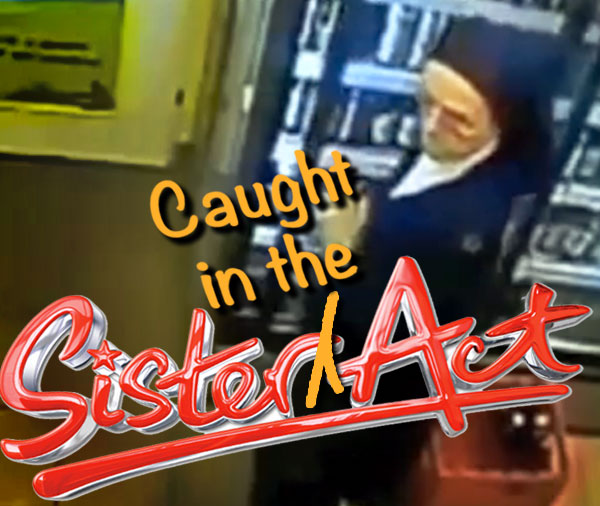 As this security camera footage from an Oklahoma convenience store shows, this elderly woman dressed as a nun smuggles not one, but two tall boy cans of beer or malt liquor under her robe.  She also appears to tuck a bottle of fitness water in her garment as well, showing that she understands one must stay hydrated when pounding tallboys.  Good for her.